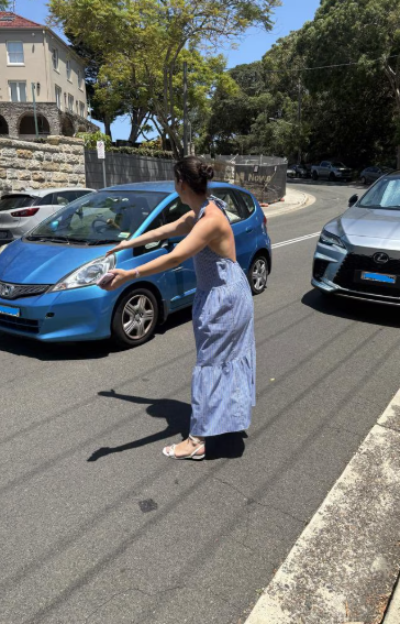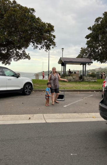 照片里,Balmoral Beach一个停车位上站着一名妈妈和她的孩子,拦着所有准备停车的车辆,等她丈夫来。