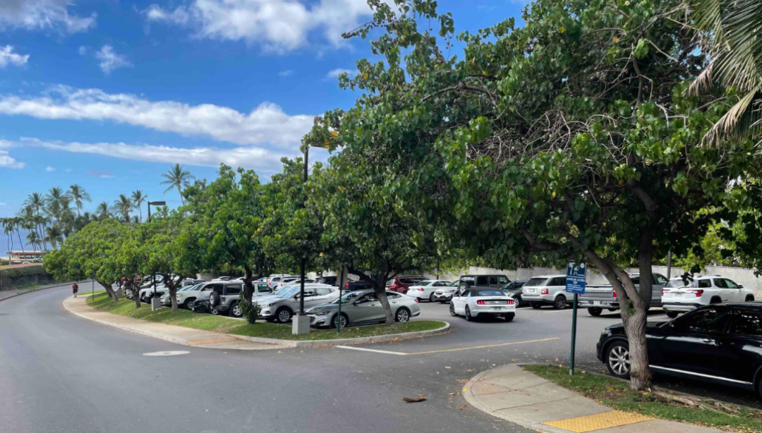 当天气温三十多度,正值海滩高峰期,停车位一位难求,车辆不停在路边绕圈,就等有人离开。就在这时,她的一位朋友做了一件很多人眼里相当“炸裂”的事——下车、用人去占停车位。