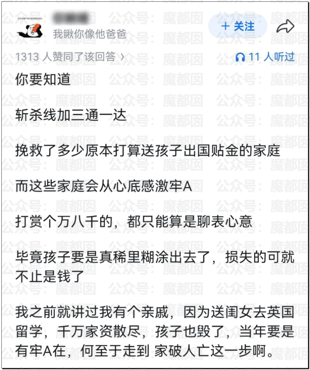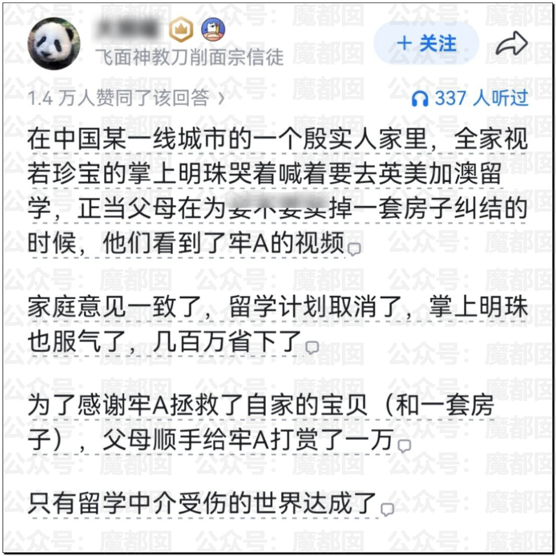 其实在牢A出现之前,我们以前零零散散的也提到过一些留学的事情,我们很清楚的告知一些粉丝,如果不是抱着继续深造的目的(仅限理工科),那么送出去基本上等于烧钱,学渣在任何国家都是学渣,现在国内对于留学生的需求已经远不是几十年前的样子了,如果没有什么特殊目的的话,普通人家还是要慎重。