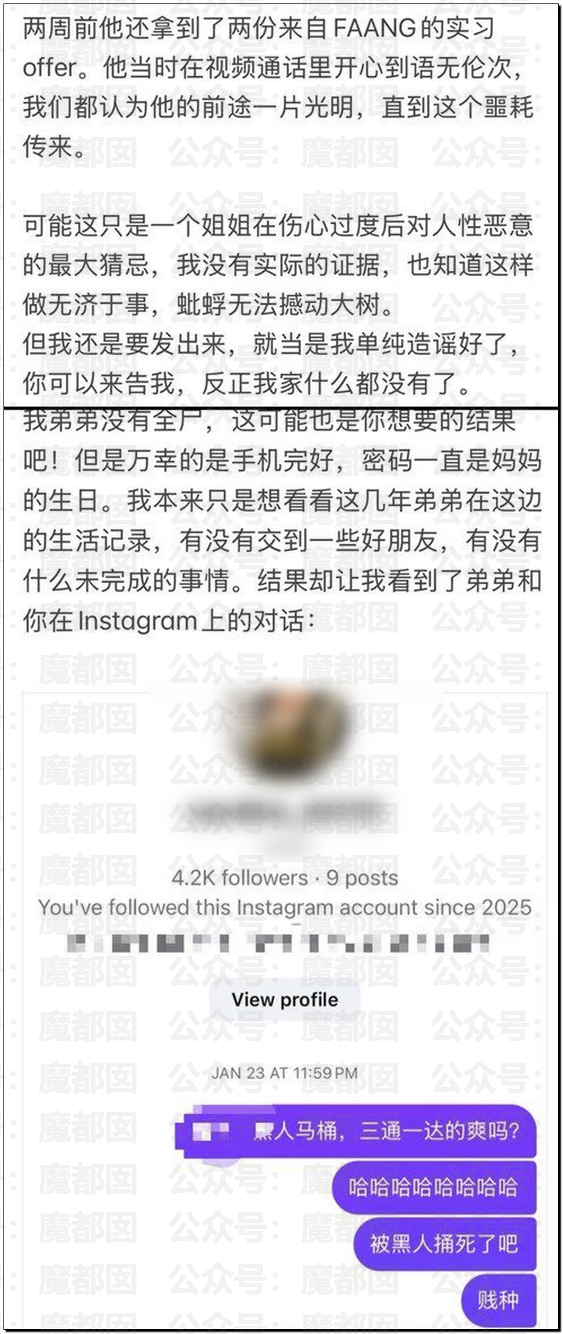 受害者是弟弟,应该是牢A的粉丝,疑似去ins喷了一个在外网搞H的女留子。