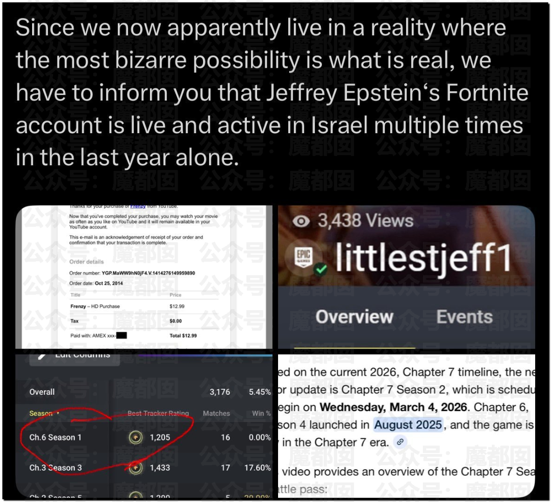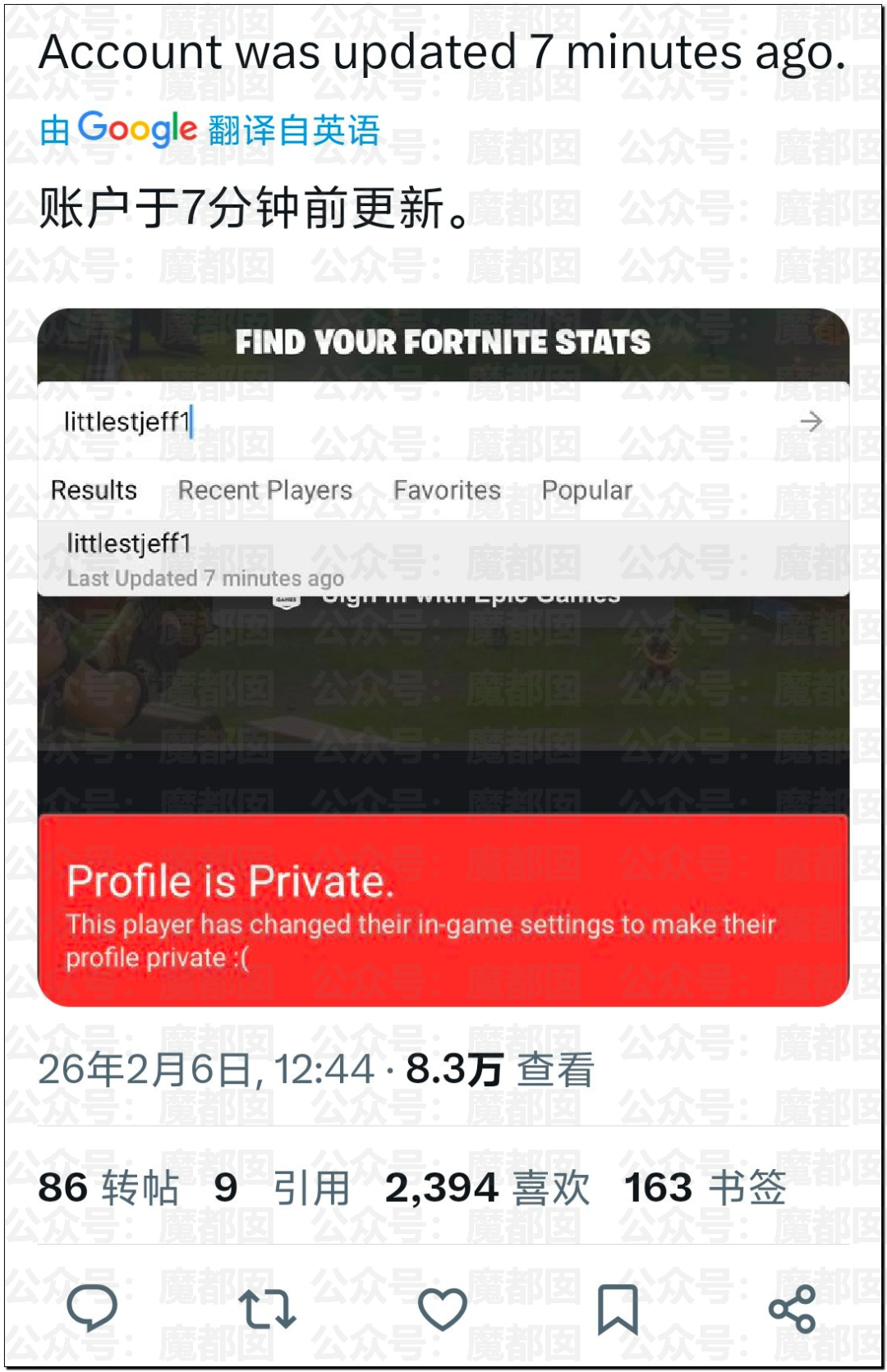 然后,美国网友又扒出了爱泼斯坦的游戏账号。发现他在所谓自杀后,游戏账号仍旧活跃,仍在以色列打游戏。被网友扒皮后,账号私密了。