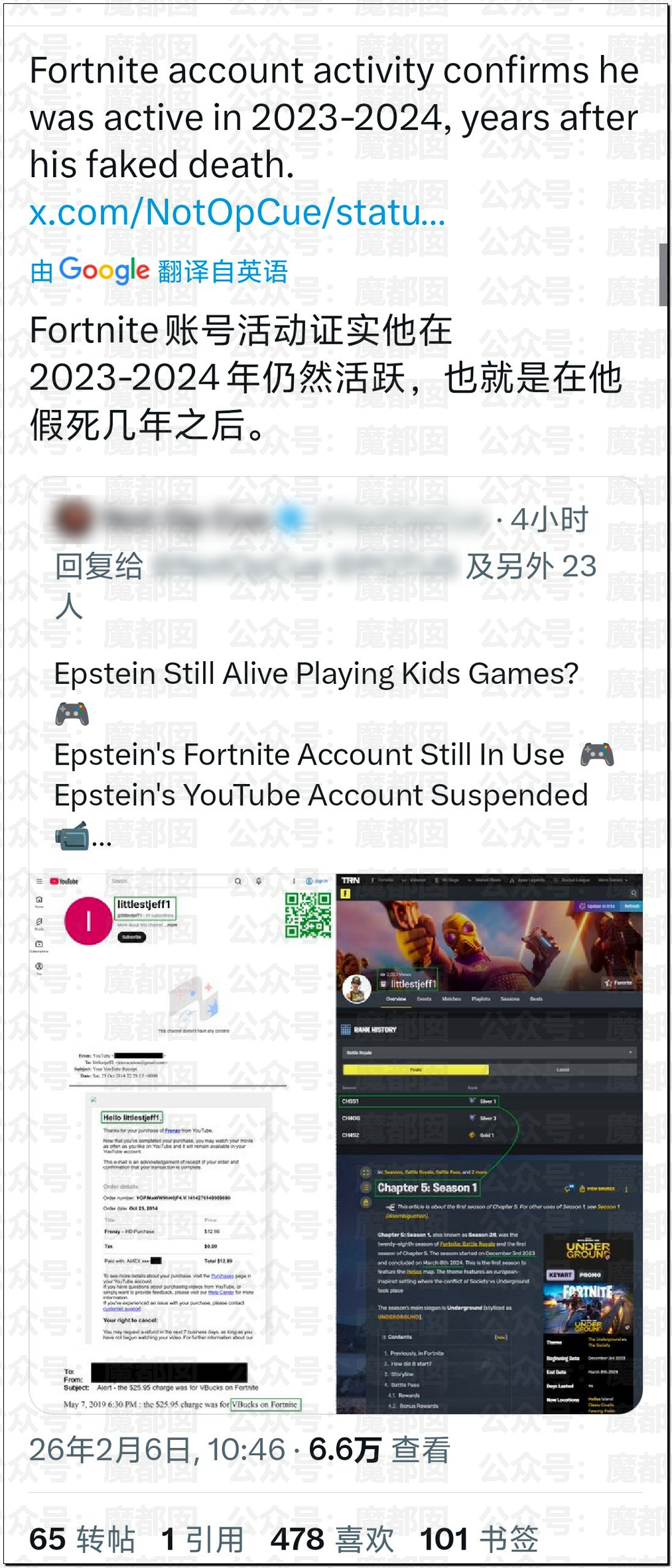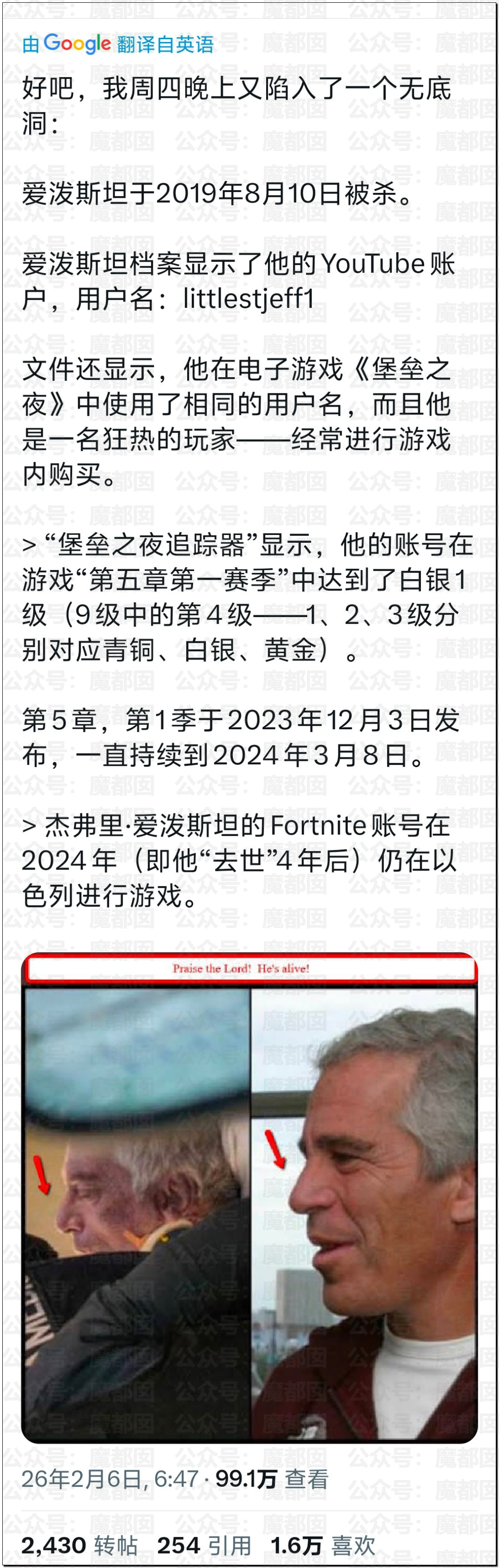 美国一直有网友在说爱泼斯坦实际上还活着,说当时被调包了。