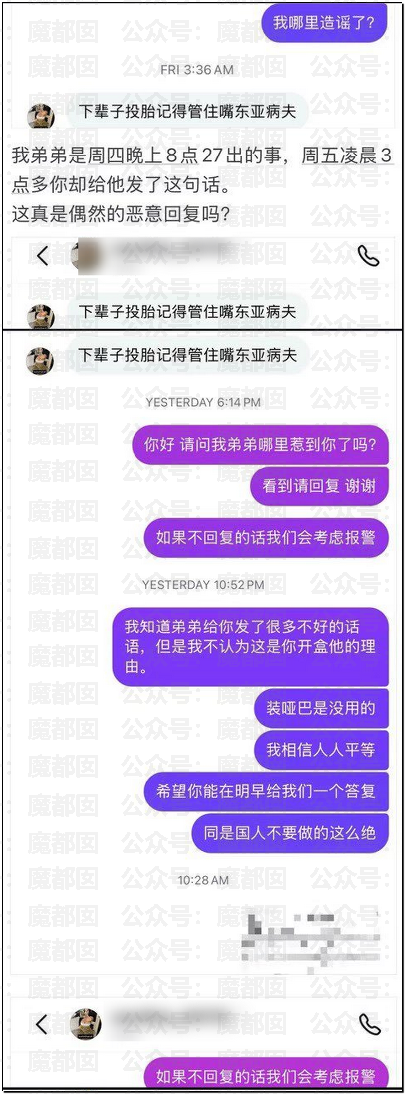 言归正传,因为这位弟弟在网上曾经发了很多涉及真实生活的信息,于是被家属认为是这个女留子开盒了弟弟。