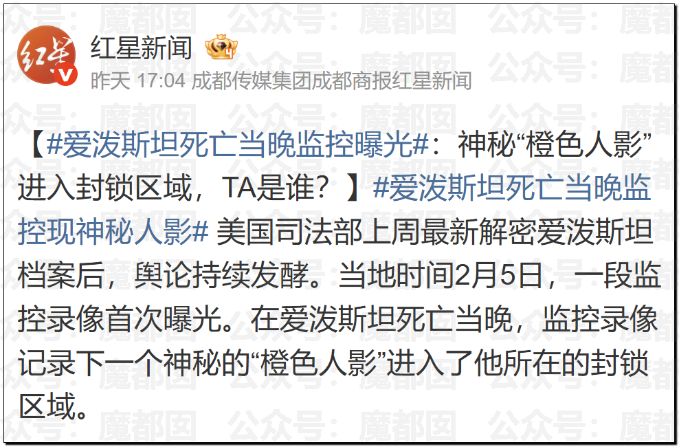 收藏震撼!爱泼斯坦死亡当晚监控橙色人影曝光!与美女嬉闹亲子鉴定视频流出!