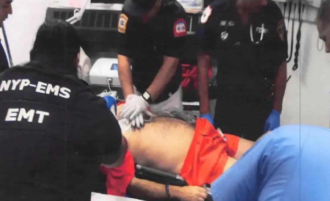 照片显示,在被发现失去反应后,狱警和医护人员对爱泼斯坦进行了插管、心电监护、静脉输液等急救措施。