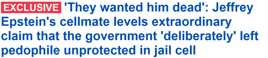 “他们(政府)想让他死!”爱泼斯坦生前狱友在最新披露的文件中爆出惊天指控。