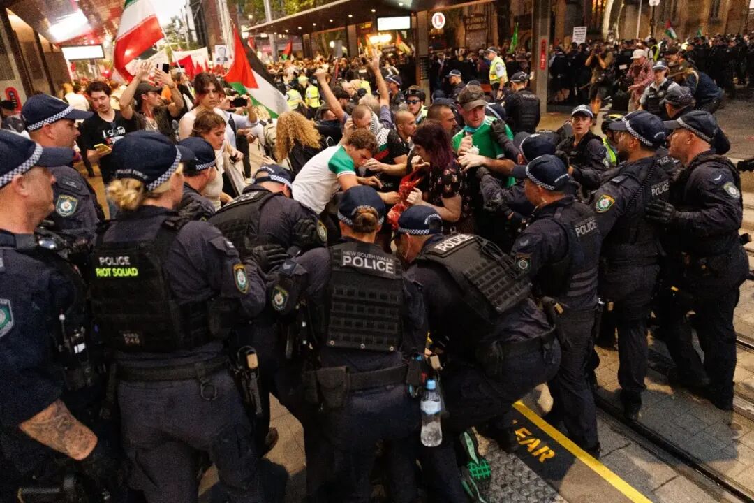 收藏悉尼市政厅爆发激烈冲突!赫尔佐格抗议失控,警民正面硬刚