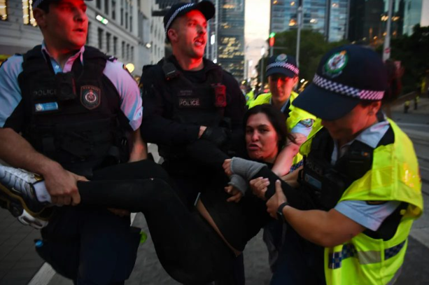 冲突发生之际,抗议者试图向新南威尔士州议会游行,而警方封锁道路,命令人群解散。