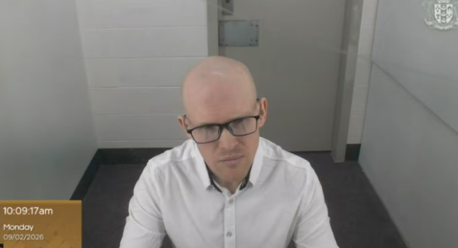 基督城恐袭案审理期间,Brenton Tarrant通过视频连线出庭。