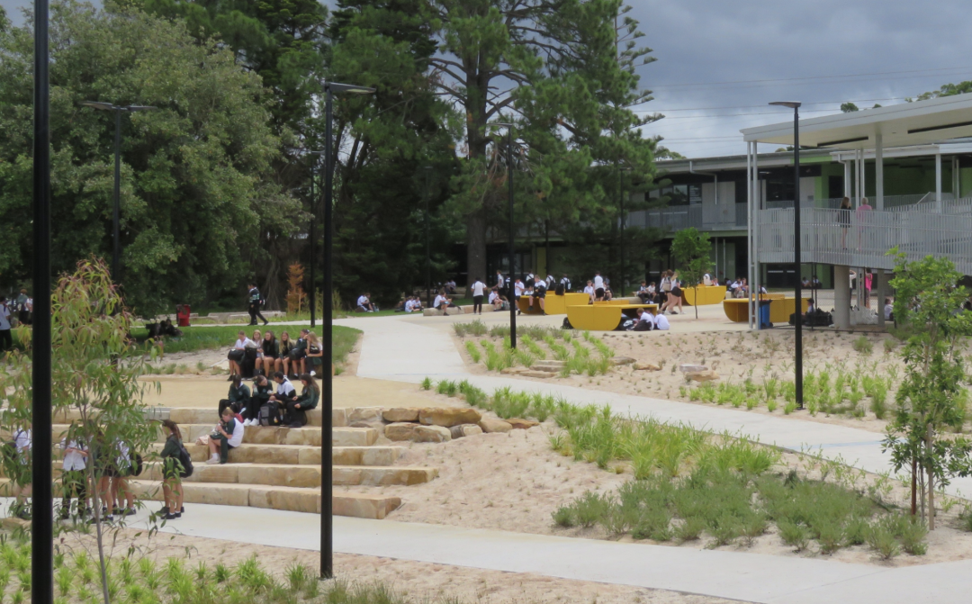 Forest High School位于Allambie Heights的山坡上,学生们可以在一侧窗户眺望北滩和太平洋,另一侧则俯瞰城市天际线。