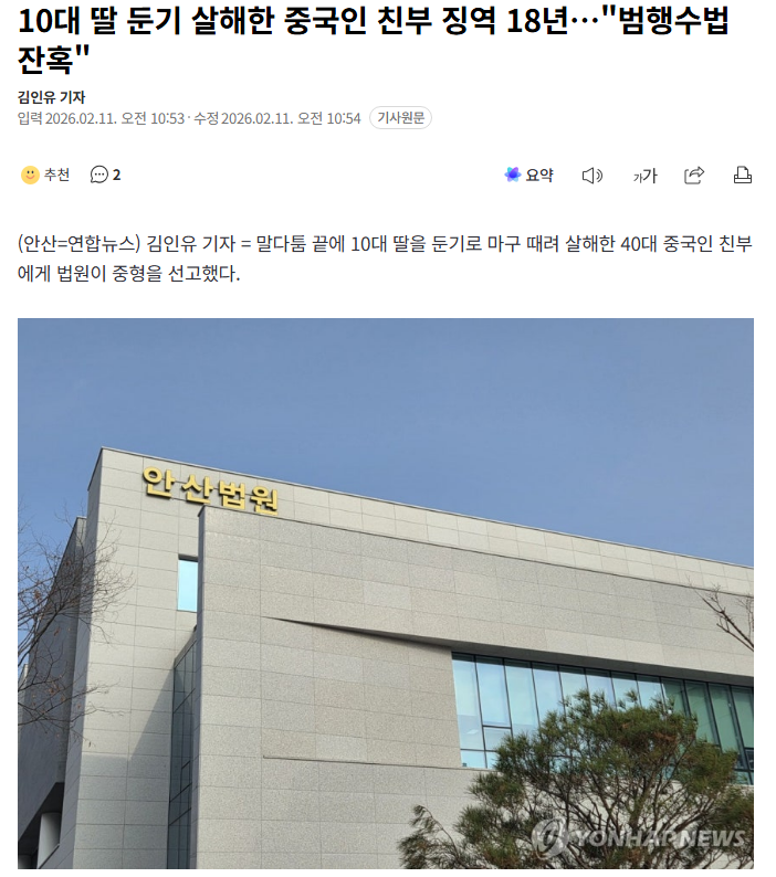 据韩国媒体报道,一位40多岁的中国籍父亲因与10多岁女儿发生争吵,竟用钝器将其残忍杀害。