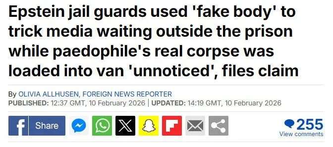 根据《每日邮报》的最新报道,爱泼斯坦的尸体到底存不存在都不好说了。