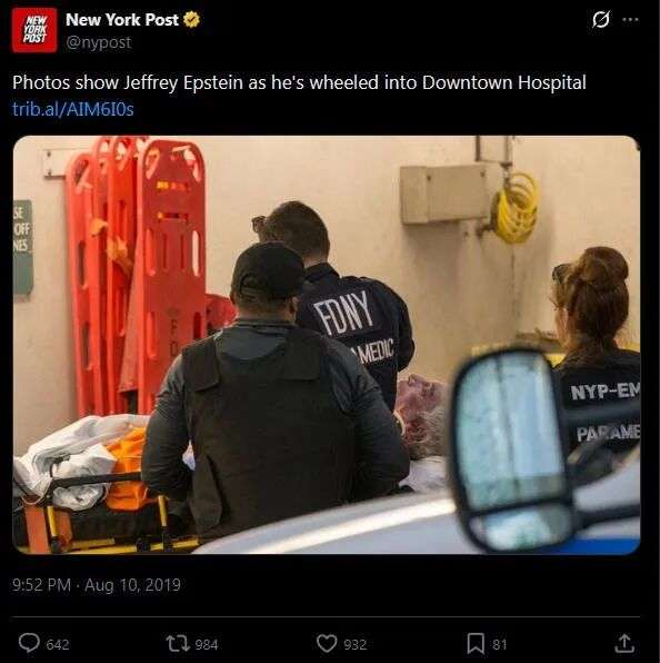 所以急救人员拉走的究竟是不是爱泼斯坦呢?