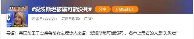 话说最近随着爱泼斯坦档案的释出,又有新的说法不断被抛出并登上热搜,其中最令人惊讶的,无疑是这一条: