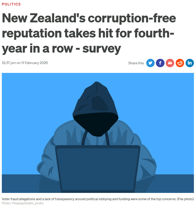 收藏新西兰“最清廉国家”形象正在瓦解!连续4年排名下滑!