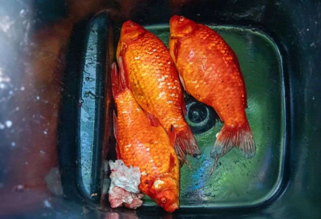 这里捞到的金鱼,和水族馆里的样子完全不同——尽管是一个品种,但已经“成精”了。