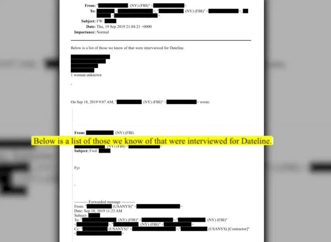一封经过删减的邮件提到被采访幸存者名单。