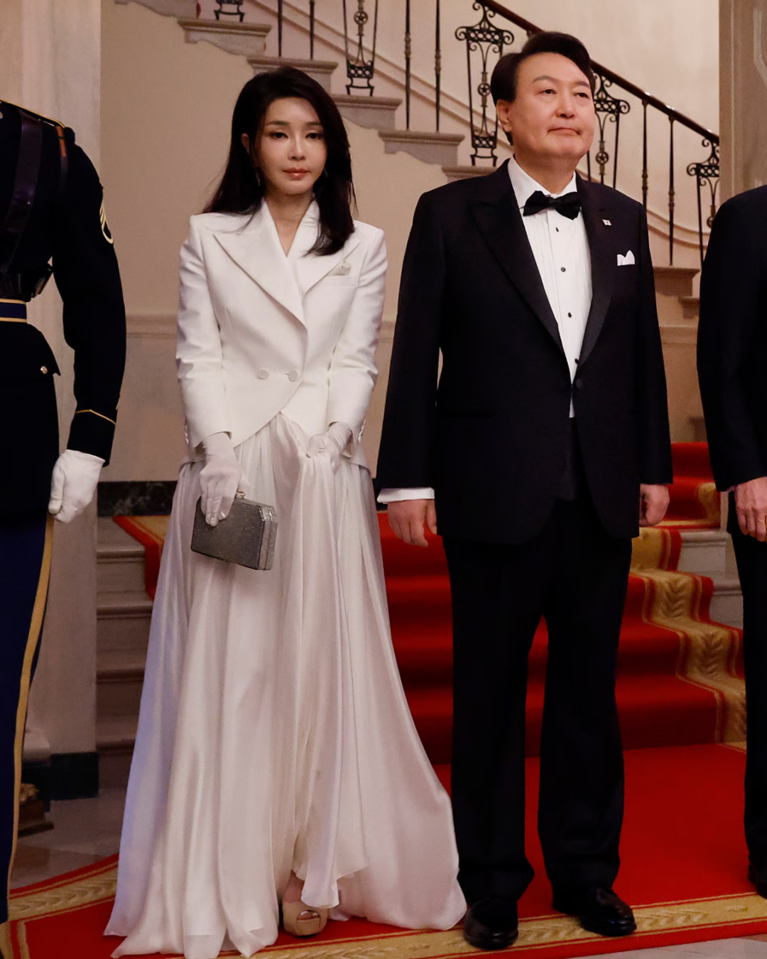 2022年改走政客路线的尹锡悦,顺利当选总统,金建希成为韩国首位有工作的第一夫人。她精致的妆容、优秀的穿搭审美都成为媒体追逐的焦点。