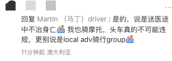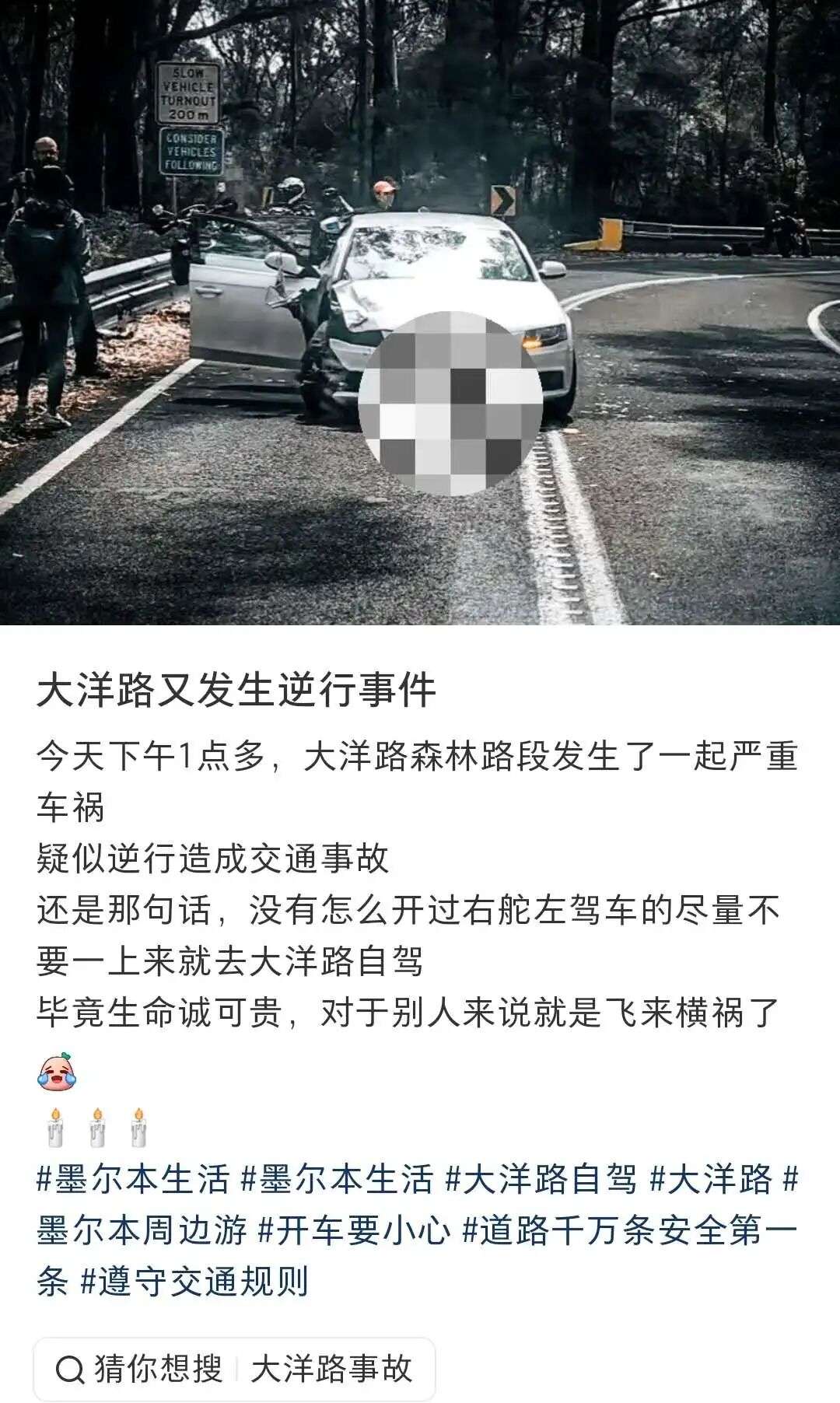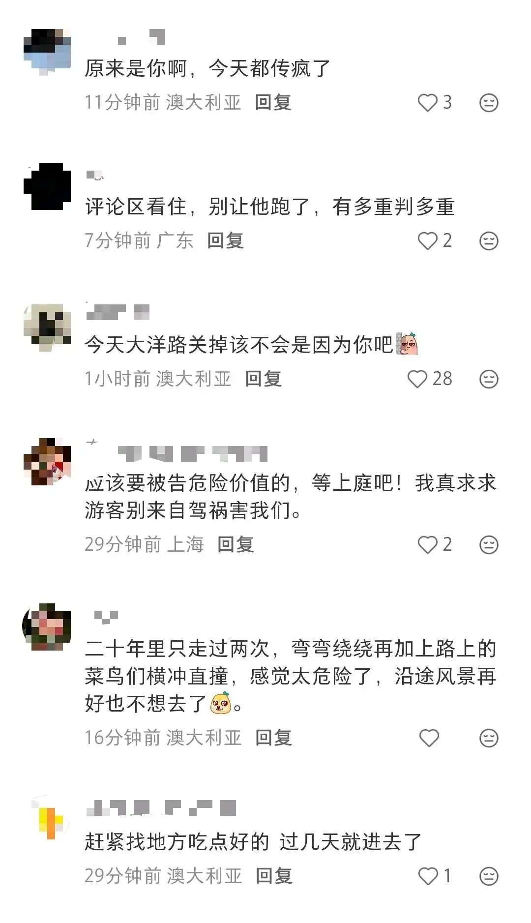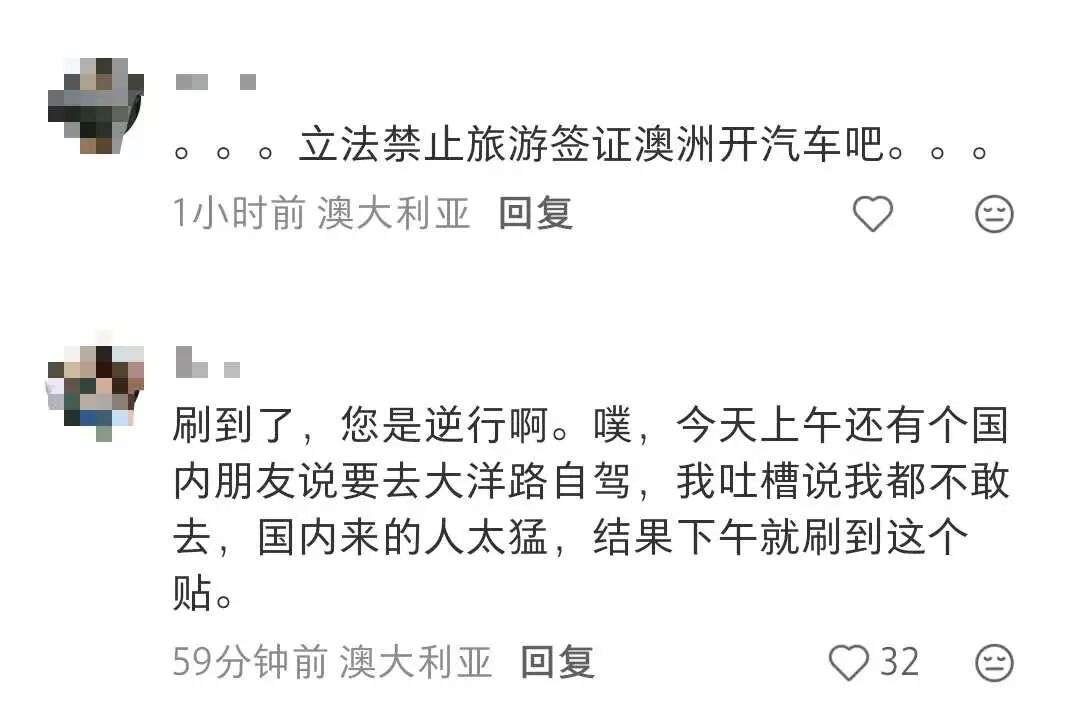 “刷到了,您是逆行啊。噗,今天上午还有个国内朋友说要去大洋路自驾,我吐槽说我都不敢去,国内来的人太猛,结果下午就刷到这个贴。”