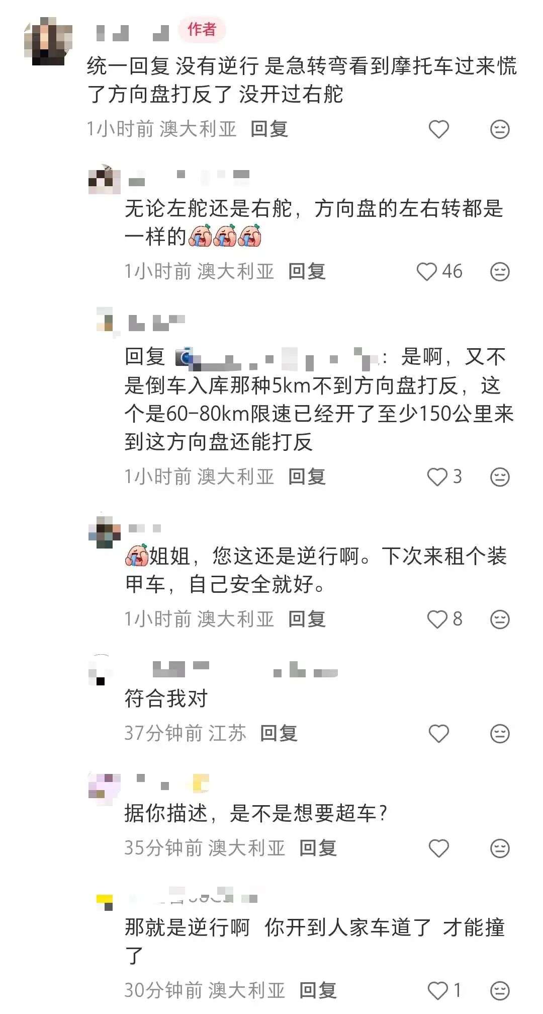 这句话虽然粗,但反映的是现实冲突,这两件车祸下面网友的留言,也反映了当地华人对不熟悉路况,不熟悉澳洲交规、不适应右舵驾驶的中国游客,意见越来越大...