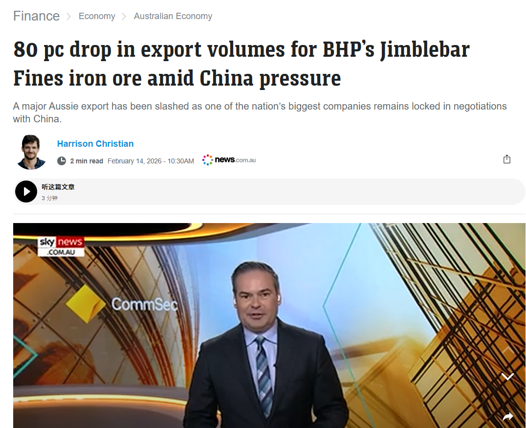 希望尽快恢复贸易。他强调澳大利亚铁矿出口对中国依赖度高达80%,年出口量主要流向中国市场。