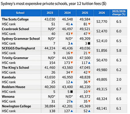 据《澳金融评论报》,The Scots College苏格兰公学仍是新州最昂贵的私立学校,2026年12年级学费为52,770澳元,比上一年增长6.5%。
