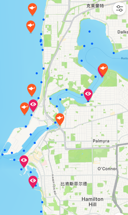 监测数据显示,过去三天内,一条已标记的公牛鲨在 East Fremantle 至 Blackwall Reach 之间被侦测设备记录多达77次,活动频繁。