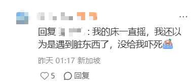 还有网友评论压根没想过新加坡会地震,以为是自己低血糖犯了。