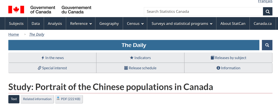 本月,加拿大政府首次发布《在加华人口与社会经济状况报告》。