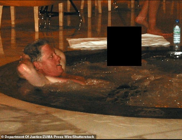 爱泼斯坦档案中还出现多张照片,包括克林顿与一名面部被打码的女性同坐热水浴缸,以及他与麦克斯韦及另一名身份不明女子一同游泳的画面。