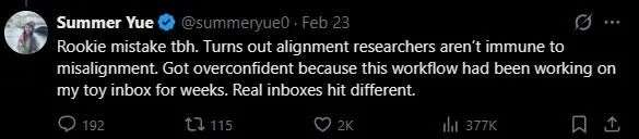 结果,Meta超级智能实验室的AI对齐总监Summer Yue,就被AI背叛了......