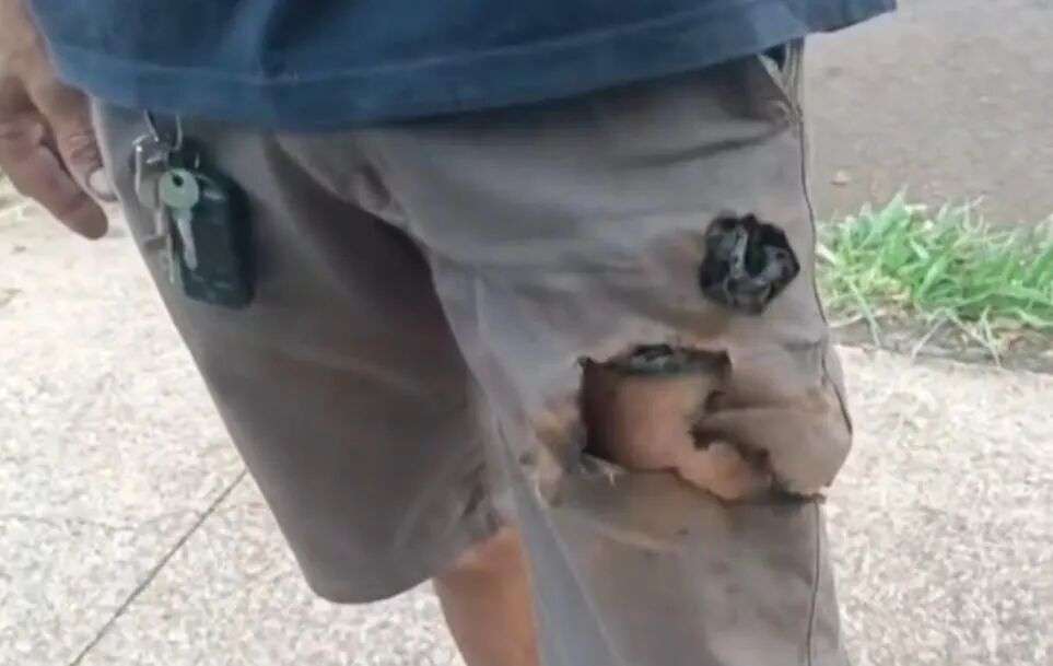 手机爆炸的威力不小,把雷纳尔多的裤子都烧穿两个大洞,他的腿也被烧伤了。