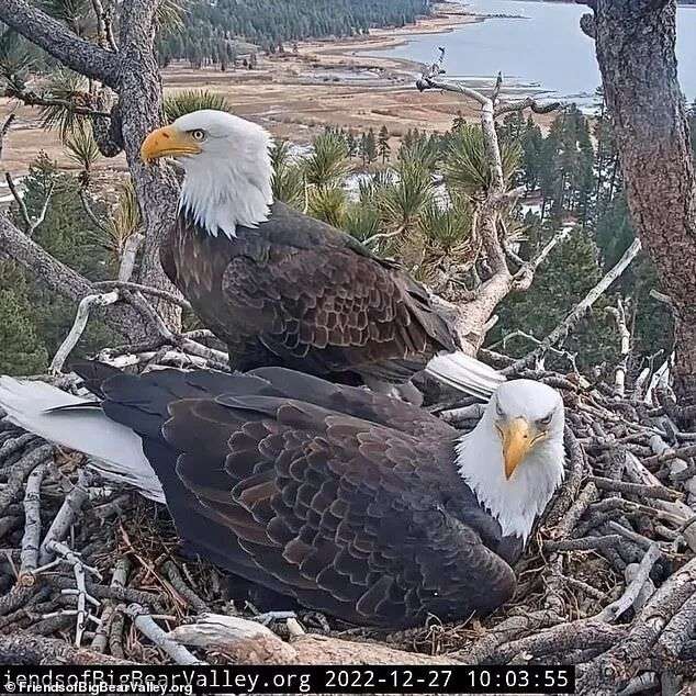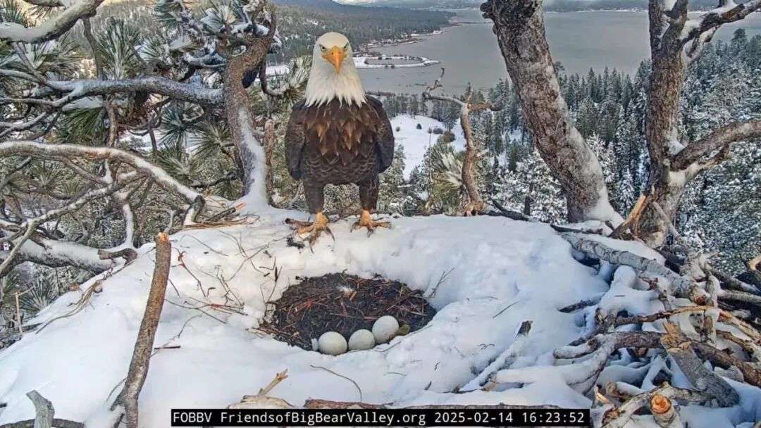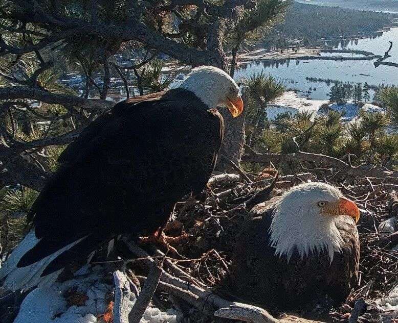 2015年,Friends of Big Bear Valley(大熊谷之友组织)在谷中湖边一棵巨大的松树上安装了摄像头,本打算拍摄另一对白头鹰,但那对白头鹰离开了这里。