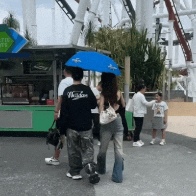 2月25日,有网友在新加坡环球影城偶遇他,身边带着一个年轻漂亮的长发美女,两人撑着一把蓝色遮阳伞,双臂紧贴,甜蜜得宛如情侣。