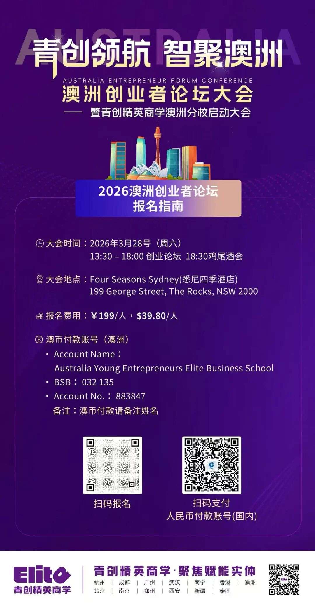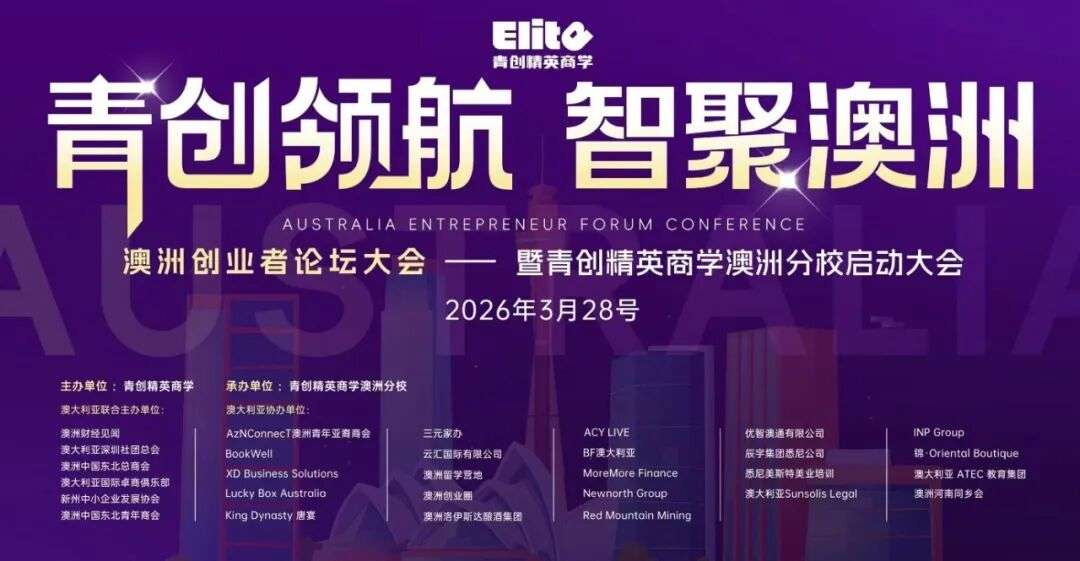 当天,我们也将共同见证青创精英商学院澳洲分校的正式成立,为在澳年轻人打开一条通往全球创业资源的新通道。
