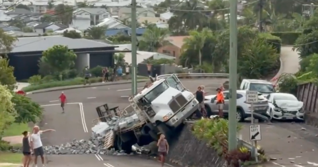 事故发生在 Sunshine Coast 的 Alexandra Headland 。据报道,早上7点左右,一辆运载建筑材料的卡车在一段陡坡行驶时突然刹车失灵。