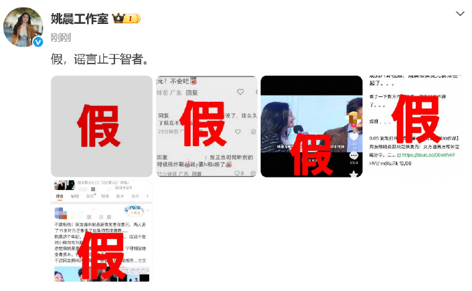 姚晨工作室回应争议言论:假,谣言止于智者。