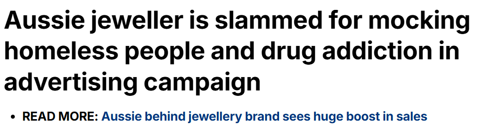 墨尔本本地珠宝品牌S-kin Studio近日发布的一则视频广告被批嘲讽“流浪者”和“瘾君子”,引发网友猛烈抨击。