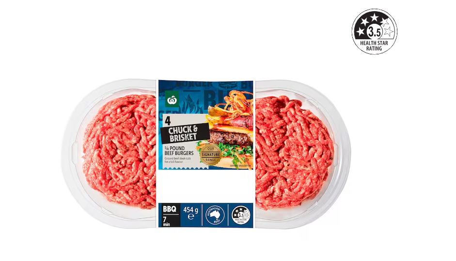 第二名是Woolworths Chuck & Brisket Quarter Pound Beef Burgers,评分70%。