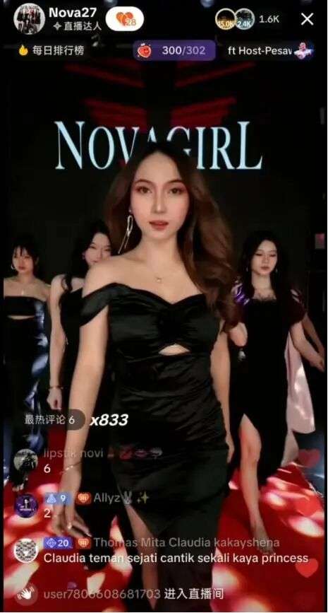 火锅是中国美食之一,但在达尔文团队的策划下,成为直播玩法的道具。达尔文在印尼经营一家TikTok娱乐直播公会,叫NovaVista media。其通过打造国民偶像女团,以PK赛、舞蹈秀等内容吸引70%的年轻女性粉丝,成立仅3个月便登顶当地公会榜首,目前月入约45万美元,成功复制了国内粉丝经济奇迹。