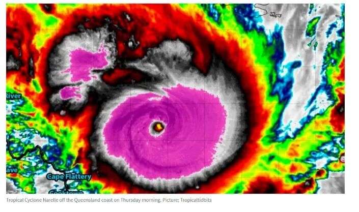 收藏五级飓风Narelle逼近昆州, 风速超250km/h引发最高警报!
