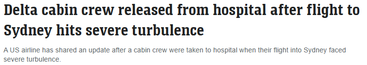 当地时间周五,一架由Delta Air Lines执飞的航班,从洛杉矶飞往悉尼,在降落过程中遭遇短暂但剧烈的气流冲击。