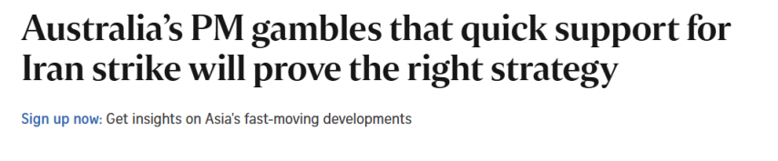 澳洲总理公开站队, 支持美国打伊朗!