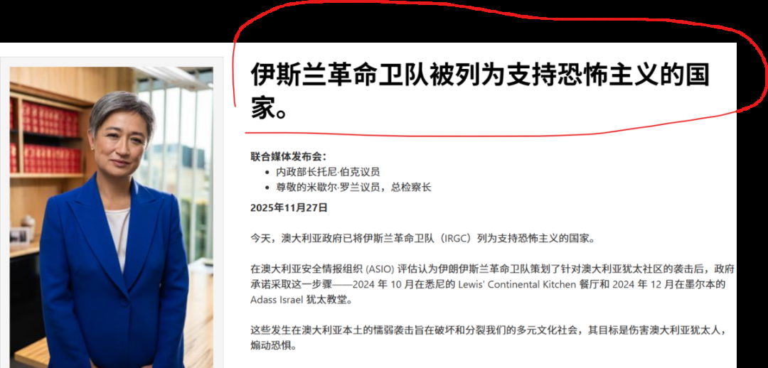澳大利亚政府宣布将伊朗伊斯兰革命卫队列为支持恐怖主义的国家,