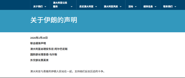 澳大利亚就成为最早坚定支持美国和以色列行动的国家之一。