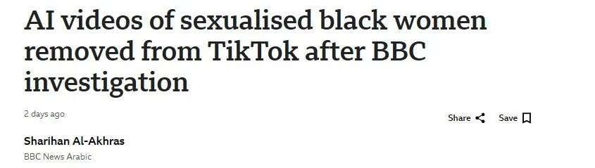 BBC最新调查发现,TikTok和Ins上活跃着大量由AI生成的黑人女性账号。