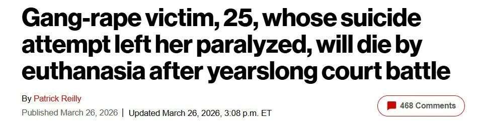 “我一直觉得很孤独,因为我从未被理解,在申请安乐死之前,我的世界一片黑暗,我预感到自己会走向非常黑暗的结局。”