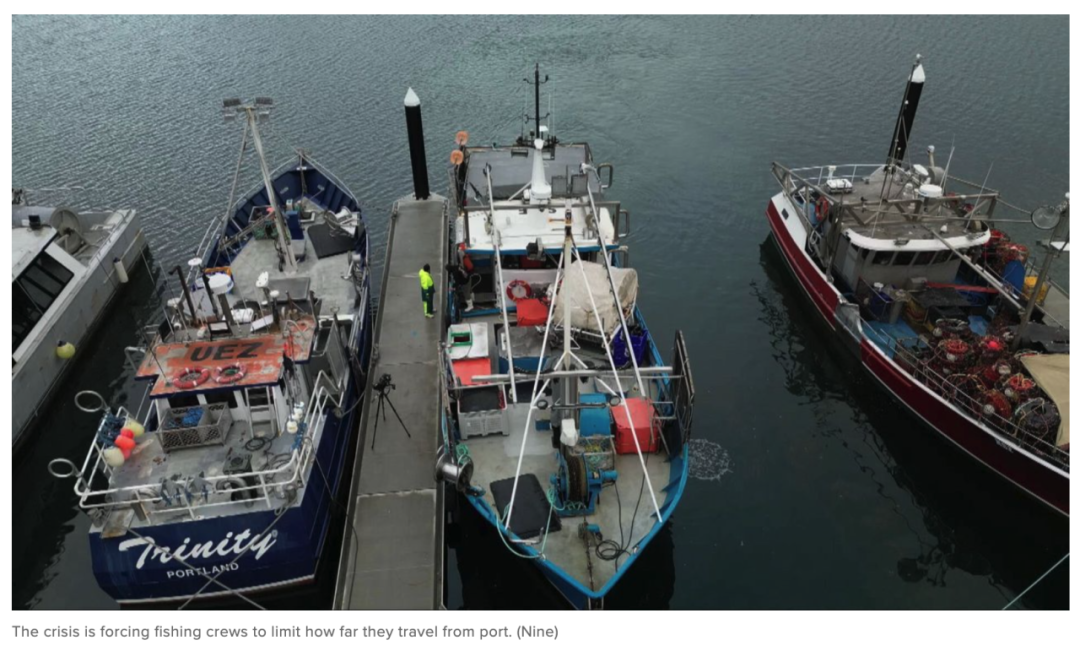 成本暴涨的冲击已经非常直观。以一艘普通渔船为例,过去一周加满油大约需要4000至5000澳元,但如今这一数字已经直接翻倍。渔民Cody Churchill表示,出海前必须先考虑“能不能捕到足够的鱼来覆盖油费”,否则就是亏本生意。在这种压力下,不少船只被迫减少航行距离,只能在离港口更近的海域作业,直接影响捕捞量。