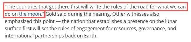 这不仅仅是“登月”那么简单。不妨用NASA前高级官员Mike Gold说过的一句话来理解:“率先抵达月球的国家,将书写人类在月球上的规则。”
