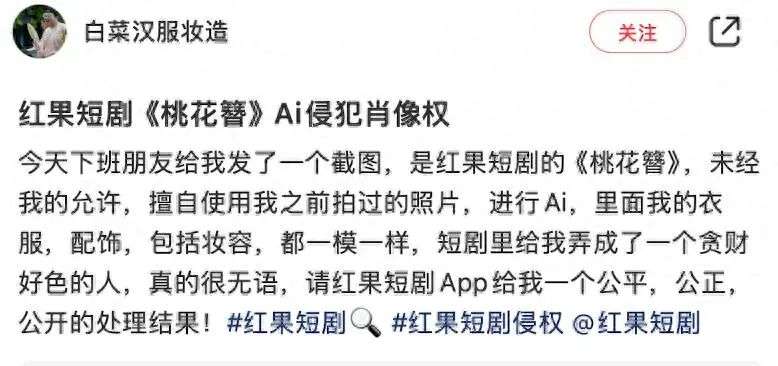 收藏千万热度AI短剧侵权素人形象,被侵权博主:将咨询律师,追究剧方、平台的法律责任